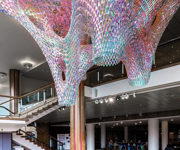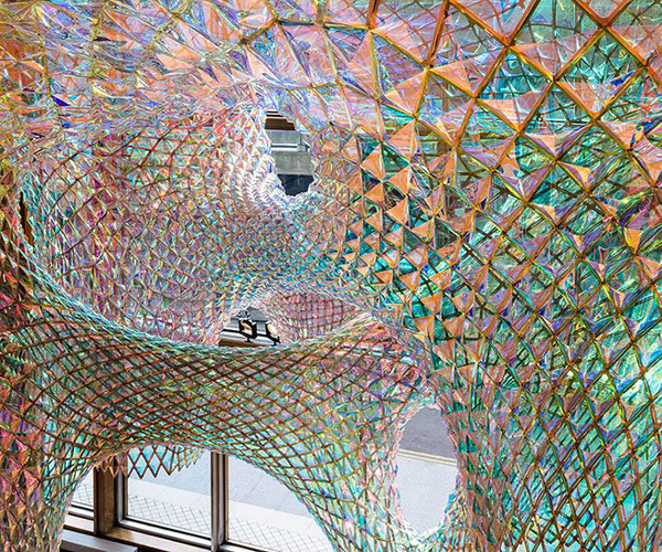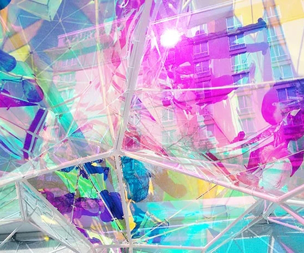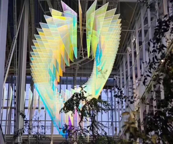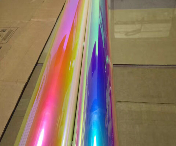 通過共擠技術(shù)疊加的塑料復(fù)合薄膜,能夠在不同的角度呈現(xiàn)不同的顏色,顏色變幻靈動,五彩斑斕。