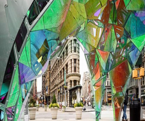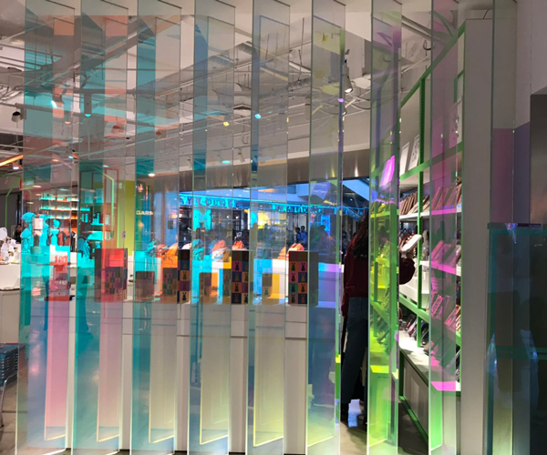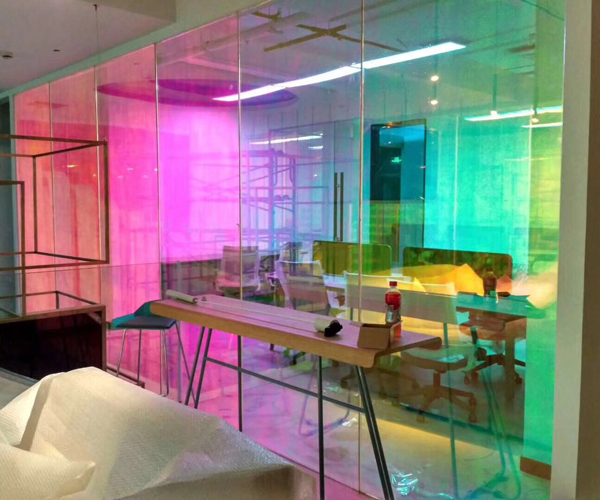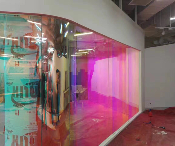 最初采用了無膠無底膜的結(jié)構(gòu),適用于兩片玻璃之間的夾層結(jié)構(gòu),形成新的炫彩玻璃。
